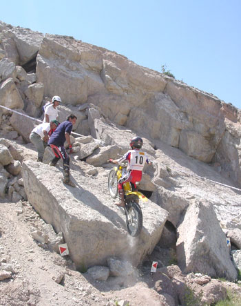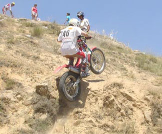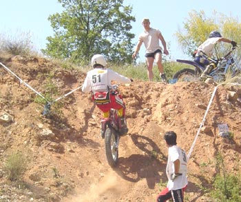 En esta ocasión el calor era máximo, y además el lugar era duro y difícil, por una parte debido a lo seco de la zona, sin árboles que diesen sombra, y por otra parte por lo complicado del terreno, con mucha tierra y piedras sueltas, haciendo este un trial de tracción sobre tierra muy resbaladiza, que se deshacía con el paso de las motos y con zonas compuestas de grandes rampas, dejando las piedras para sólo algunos pasos muy concretos en alguna que otra zona.