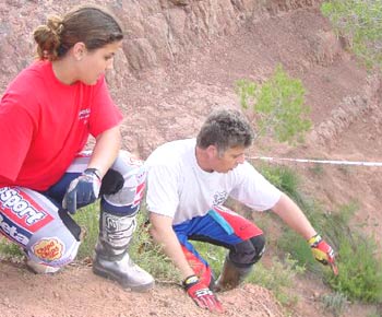 - A pesar de haberse roto una costilla haciendo enduro en el desierto de Marruecos, JM Alcaraz Senior quiso hacer de control en la zona 4, eso sí con una sombrilla para el sol.