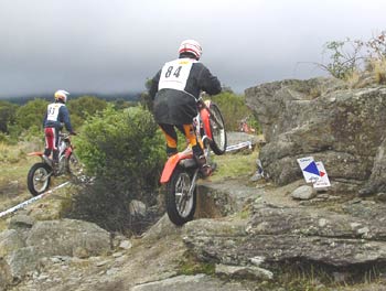 La primera zona estaba marcada sobre tierra y piedra, con algunos tramos de piedra suelta, que, aunque húmedas, ofrecían el agarre suficiente. En la zona dos el terreno era muy parecido, pero con más subidas y escalones sobre piedra resbaladiza en los que se hacía necesario tener un buen control de gas y de tracción de la moto, destacando tres bonitas subidas en la máxima categoría.