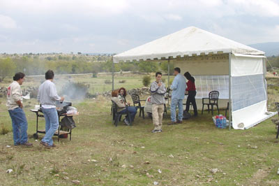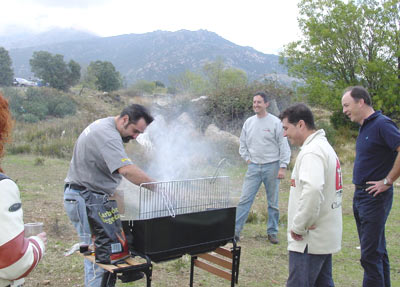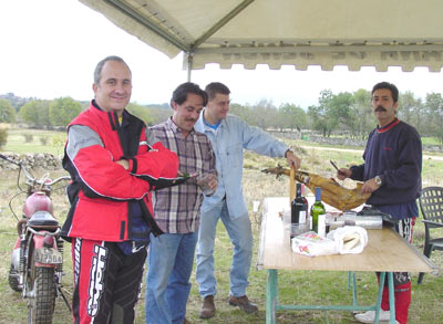 En Becerril de la Sierra, se dio el primer gran paso hacia este ambiente festivo y clásico cuando los tres amigos del autodenominado VTT "Vino Tinto Team", David Martínez, Juan Manuel Castrillo "el picoleto" y José Mª Dominguez "ultra sur" decidieron que las cosas tenían que ser de otra manera. Dicho y hecho, se pusieron manos a la obra y se presentaron en Becerril con una enorme carpa en la que hubo de todo: parrillada de chuletas, jamón ibérico, empanada, patatas, agua, vino y refrescos... Sí señor, el trial clásico va a ser una gran fiesta a partir de ahora. A la carpa estaban invitados todos los pilotos de clásicas y esto promete ser una constante en todos los triales que se realicen desde ahora. Eso sí, para las siguientes los pilotos se comprometieron a aportar su parte, pues en Becerril los del VTT tiraron la casa por la ventana llegando incluso a regalar camisetas, desde luego el ambiente era inmejorable.
