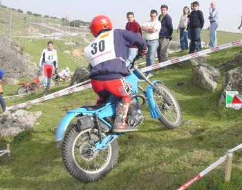 Por otro lado las motos cada vez son más variadas y más cuidadas, lo cual está muy bien pues son las verdaderas protagonistas en estos triales. En Colmenar hubo record de inscripciones a pesar de que también hubo muchas ausencias, entre ellas la de habituales como Miguel Sánchez Monje, Juan Nadal, los Franqueira padre e hijo, o los hermanos Antón, que tanto animaban con sus bromas y piques Montesa - Bultaco. Realmente es una pena que tras un par de triales difíciles en el nivel A a finales de la temporada pasada los simpáticos hermanos hayan decidido abandonar, es algo que no debería pasar nunca, y suponemos que ahora con la implantación oficial de los dos niveles no será así, pues a quien le resulten complicadas las zonas de A podrá pasarse a B disfrutando igualmente de una clasificación individual.