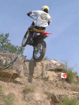 La 4, la más fuerte de todas. Se llevó la palma en cuanto a número de fiascos, y es que la primera piedra, una entrada para variar en volada, era totalmente inclinada y escupía la moto hacia la izquierda, justo donde había una cinta, que delimitaba la sección. Cayeron cincos unos detrás de otro, y la cinta se arregló una y otra vez (el juez vio donde estaba la gracia de la zona, y la mantuvo intacta las tres vueltas) para que la sección no perdiera la dificultad. Para los más afortunados, una vez superado el primero, un segundo escalón vertical, de un metro y medio nos volvía a poner a prueba en esta dura sección.