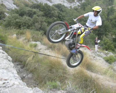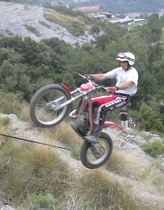 Pero todo no acababa aquí, y los de la categoría Experta deberían lanzar, desde el último giro de izquierdas, sus diferentes motos para saltar desde un montículo, atravesar un camino, un agujero y llegar al otro lado. A esto seguía una volada espectacular, de quizá 3 metros de largo, donde más de uno se pensó en picar la zona. Pero la verdad es que con el terreno seco, y en cuarta en mi caso, se podía hacer bastante bien.