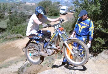 La zona 6, entre grandes bloques de piedra rojiza me volvía a sonar… ¡ Ya está! Había estado allí en el año 2000, en el Campeonato del Mundo por naciones (TDN), que tenía su centro neurálgico en Seva ( Seva 2000, se llamó aquel trial) pero que llegó hasta la localidad de Taradell. No nos marcaron la zona que había visto yo en su día, ni muchísimo menos, pero sí que fue una zona muy divertida, con varios giros y escalones, sobre un terreno que permitía la corrección de la trayectoria de la moto en todo momento. Eso es de agradecer, ya que no siempre tenemos la oportunidad de jugar con el propio terreno, sino que más bien, juega él con los intrépidos trialeros.