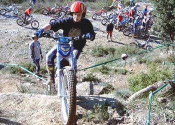 Centrándonos ya en la carrera, empezaban muy cerca del paddock la zona 1 y 2. En un terreno de gran adherencia en la roca, y de difícil tracción en los giros, con una arena muy fina en la que, si no arrancabas con mucha finura era realmente sencillo tener que poner un pie cuando la rueda trasera perdía tracción. Pese a que yo pensaba no haber estado nunca en Taradell, la ubicación de la zona me sonaba, como si ya hubiera estado allí antes...