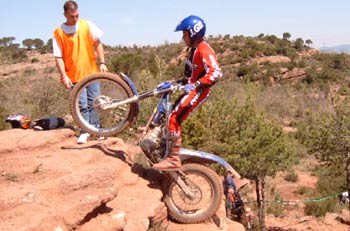 La 5, fue la más decisiva de todo el trial. Si bien todas las puntuaciones fueron muy bajas, fue esta sección la que registró más penalizaciones. Enclavada en un recodo de ladera roja, típica en varias secciones, tenía una ascensión en curva, arrancando desde un giro de izquierdas, y además, en medio de la ascensión, cuando todavía la moto no había acabado de subir la rueda trasera, tenías que volver a reprender para subir la parte final de la rampa. Más de un corredor picó con la rueda delantera en el segundo obstáculo, y en este punto tenían que recurrir a poner pies para poder sacar la moto de tan comprometida situación.