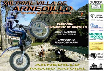 El XIII Trial Villa de Arnedillo es una de las pruebas más consolidadas del calendario, por lo cual este es el decimotercer año que se celebra consecutivamente, todo gracias al Moto Club Calahorra y principalmente al Excmo. Ayuntamiento de Arnedillo que es quien corre con los gastos económicos de la prueba.