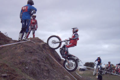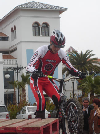 Ya de nuevo en el paddock apareció tímidamente la débil lluvia, pero esta inoportuna inclemencia no fue motivo para que los tres espectaculares pilotos de biketrial, que también realizaron las zonas, José Antonio Pulgarín, Antonio Alonso y Cristian Sánchez, deleitaran a los allí presente con una amplia y variada demostración de sus habilidades sobre sus monturas.