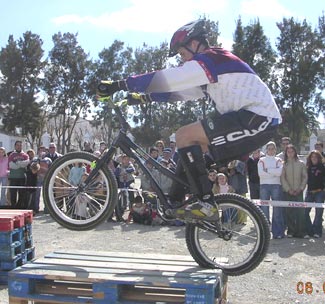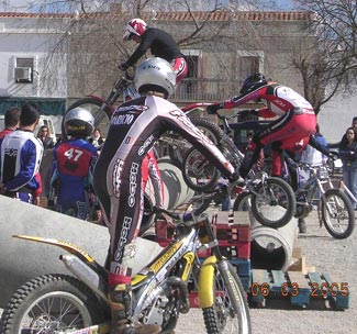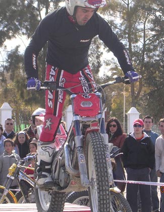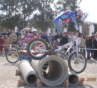De regreso al punto de encuentro los pilotos de biketrial José Antonio Pulgarín (Ex-campeón mundial y genio del equilibrio), Antonio Alonso (jóven de excelente nivel y técnica) y Cristian Sánchez (Campeón Poussin Zona-Sur ´04) demostraron sus habilidades en una amplia exhibición desarrollada en una zona indoor preparada al efecto, arrancando numerosos y efusivos aplausos del público congregado.