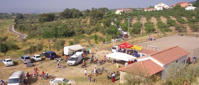 Comenzó el día con un azulado cielo que a lo largo de la mañana se fue vistiendo con algunas nubecillas; a primera hora del domingo se comenzaron a llenar las inmediaciones del polideportivo del pueblo en un día que prometía ser muy caluroso. Por suerte no fue así y aunque el termómetro marcaba 29º cuando se terminó la carrera, la permanente y ligera brisilla que sopló durante toda la mañana daba un respiro agradable, sobre todo cuando te quitabas el casco.