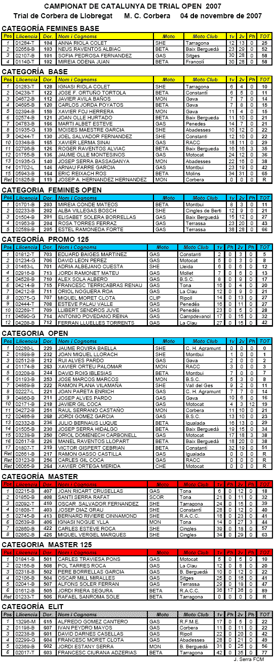 Para el campeonato de Trial per a Nens aún quedan dos pruebas para disputar por lo que las clasificaciones finales aun no están en todos los casos decididas.