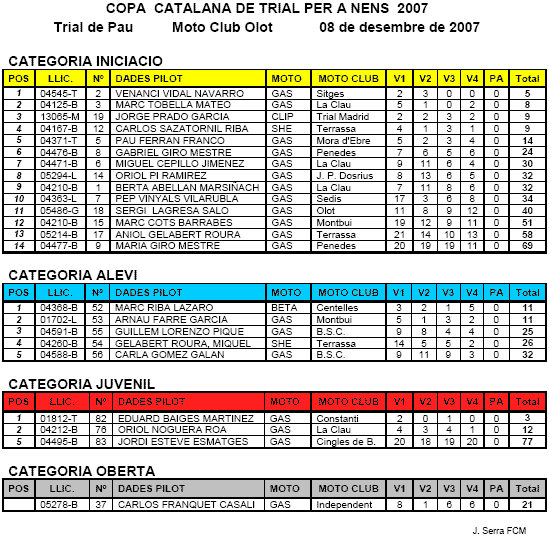 El pasado sábado día 8 de diciembre se ponía punto y final a la Copa Catalana de Trial per a Nens 2007 con la celebración de la prueba del Trial per a Nens de Pau.