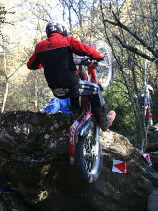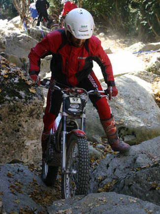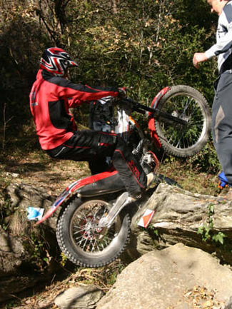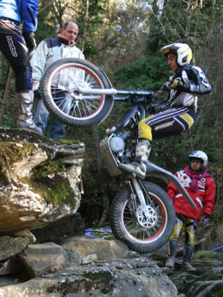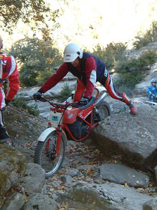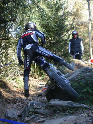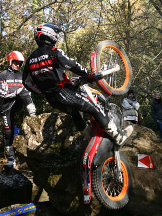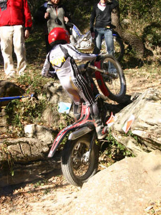 Pera la sección que marcaba la mitad de las secciones, fue una de las más técnicas. Pasos muy difíciles para rojos, que no iba a ser una excepción, y dificultad en una piedra de salida en rampa para los azules, que la hicieron muy complicada. Sobretodo, como hemos comentado, porque la piedra estaba todavía húmeda y la trazada de la rueda trasera era muy difícil para todos los corredores, ya que no era lineal sino se le ayudaba mucho a la moto y se la acompañaba a que sólo se deslizara por ella.