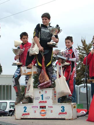 Edu Baiges, que el año pasado a pesar de su corta edad quiso probar en 125, esta temporada parece que se queda en la que es su categoría, Juvenil y en Constantí se adjudicó el primer puesto por delante de Oriol Noguera, segundo, y Jaime Busto, que dio la sorpresa en juvenil con este merecido tercer puesto.