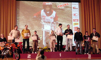 A las 13:00 horas dio comienzo la gala de Entrega de Trofeos de los diversos Campeonatos y Trofeos, cuyos premiados en las categorías de Trial fueron los siguientes: