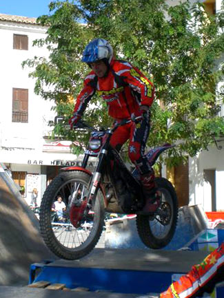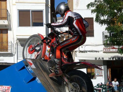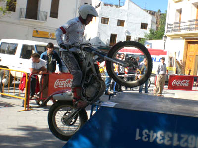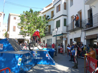 Una zona indoor en la plaza del pueblo, junto al ayuntamiento, congregó gran cantidad de aficionados que cómodamente sentados en las terrazas de los bares cercanos se impregnaron de ambiente trialero. Con unos pocos contenedores se marco esta zona que harían todas las categorías y así el publico presenció tanto evolución de los primeros espadas valencianos como de las jóvenes promesas.