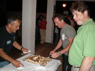 Como de costumbre en esta cita trialera, la noche previa a la carrera, la organización y los participantes que llegan el sábado, se "montan" una agradable velada con barbacoa y estas cosillas. Además del tema gastronómico, en el que este año no falto ni tarta de cumpleaños de Carlos Parejo, fue un buen momento para contar batallitas y sacar a relucir temas trialeros de toda la vida.