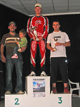 flanqueado por los dos pilotos de Todotrial-Non Stop,