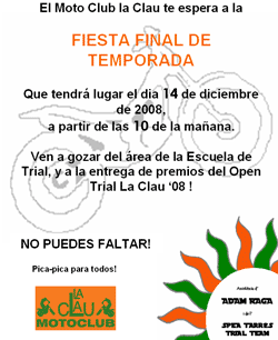 el I Open La Clau 2008 finalizado, el moto club La Clau os invita a la fiesta