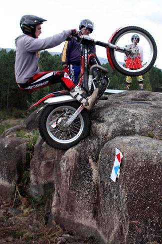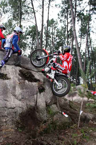 Por detrás el rey de la regularidad, el gentleman del trial gallego, Juan Lumbreras y su inseparable Beta han realizado un magistral trial con una tarjeta sin penalizaciones, al igual que Luís, lo que le dieron la suficiente ventaja para superar a José Goce, ya más relajado, pero sin despistarse del regreso muy fuerte de Gerardo Soya. Gerardo consiguió subir su Montesa hasta empatar la tarjeta de José, pero el mayor número de ceros del de Sherco le dio el último peldaño. No perderemos de vista a Gerardo que demostró su regularidad y buen estado de forma igualando su tarjeta en las tres vueltas.