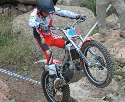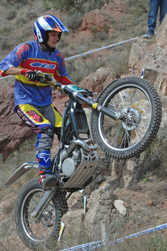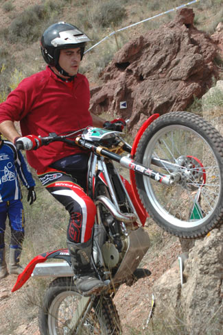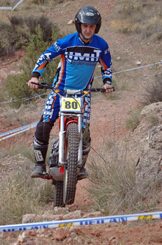 Juan Franciscco Sánchez tuvo problemas con el amortiguador trasero de su Gas-Gas, pero ni aun así se resiste a bajar de lo más alto del cajón, obteniendo la victoria con 38 puntos.