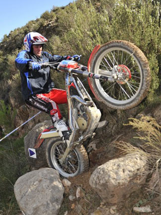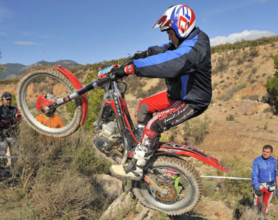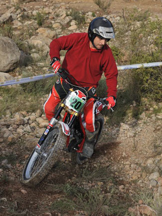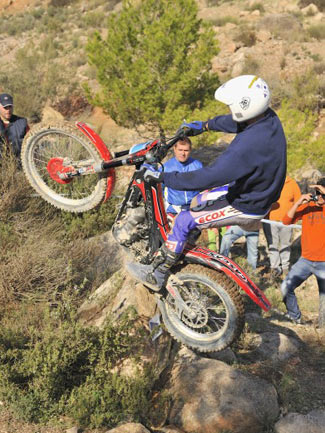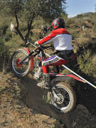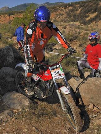 La zona tres contaba con un escalón de piedra en donde algún piloto se dejó el carter agarrado, más adelante una subida de tierra, con una arrancada delicada por el barro y en el final una meseta intermedia, natural y preciosa en donde se había de retorcer la moto para acometer la salida con un paso estrecho y en curva, vamos que hizo las delicias de los participantes.