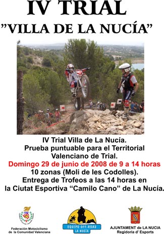 Debido a la masiva afluencia de pilotos los fines de semana para entrenar y practicar el deporte del trial, en el municipio de La Nucia (en ocasiones de una manera descontrolada por mas de 20 motos) y por unas partidas determinadas, nos vemos en la necesidad de regular, no prohibir el acceso a dichas zonas con vehiculo a motor y solo y exclusivamente para la practica del trial.