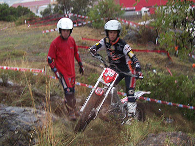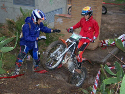 Tras estos detalles y a partir casi de la zona 4 de la primera vuelta empezó el diluvio, no con fuerza pero si calando y dejando las zonas con riesgo alto de caídas. El público huyó despavorido, no todos pero casi, lloviendo y trialeando es una pasada, los pilotos lo comentábamos pero nadie daba marcha atrás, lo estábamos disfrutando hasta el máximo ya que la tarde se hace corta.