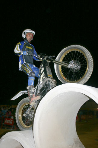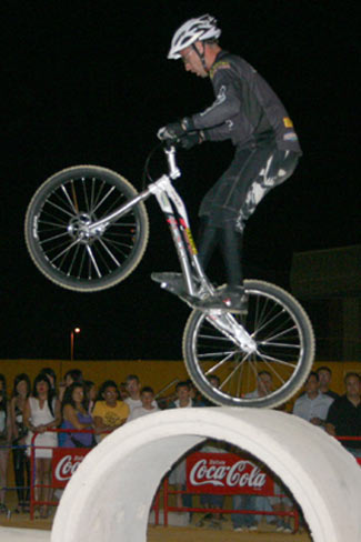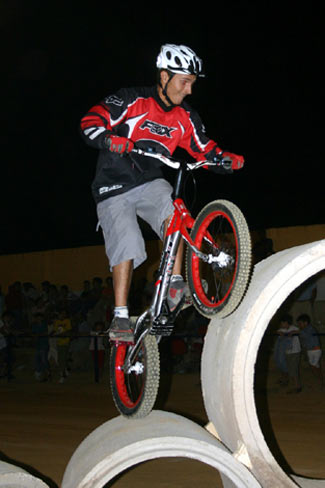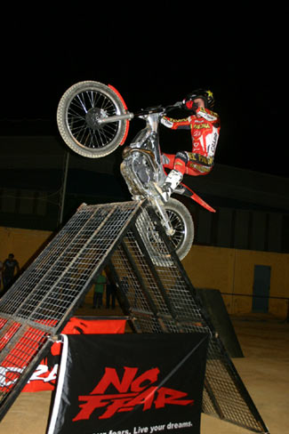 Antes de la gran final hubo lugar para que el trío de bikers formado por el joven José María Mesa, Javi Fernández y el múltiple campeón de España de la modalidad el granadino Rubén Ramírez que doblaba (moto y bici) y que realizaron con una magnífica exhibición de trial bici con sus evoluciones y diferentes acrobacias sobre las diferentes zonas del trial, animando al personal y preparando el ambiente para la final a tres.