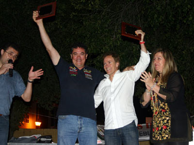Estos además entregaron sendas placas en agradecimiento a su colaboración a Isidoro "El Paloma" y al comentarista y trialero Enrique Romero, que llegó para la final desde Baeza, donde esa misma tarde retransmitió un festejo taurino para Canal Sur Televisión.