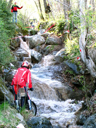 Las zonas uno, dos, cuatro y cinco eran de agua y piedra, situadas en una torrentera por la que bajaba un caudal de agua importante y que al paso de los pilotos se ponía cada vez mas difícil.