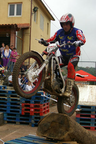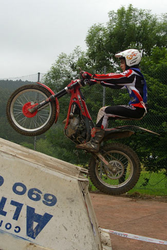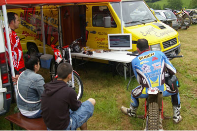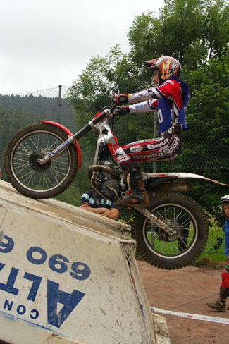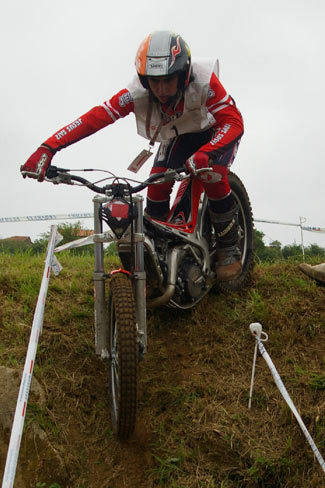 Afortunadamente el aguacero solamente duró media hora, pero el mal ya estaba hecho, pues las zonas quedaron muy embarradas y un trial que iba a ser sencillo y muy bonito quedó convertido por obra del agua en una prueba de patinaje, además de volverse muy duro físicamente para los pilotos.