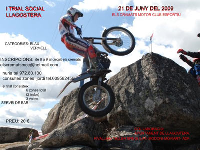 Organizada en colaboración con el Moto Club Riuprimer Gas i Rocs la salida del primer participante será a las 9 de la mañana desde la zona de las piscinas municipales. Este fin de semana, contaremos también con servicio de Bar, así que podremos desayunar en el mismo lugar del trial.