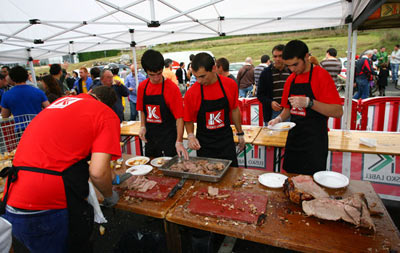 Mientras se desarrollaba la prueba, la organización asó una ternera. La gente del pueblo acudió en gran numero a ver la prueba y degustar la carne recién hecha. Buena iniciativa para hacer más popular nuestro deporte.