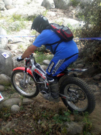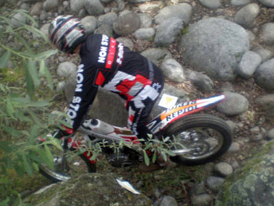 El día de la carrera salió lluvioso, lo que implicaba que se complicaría mucho el trial, la naturaleza de las piedras de la zona, muy redondas y con musgo, las convertiría en auténticos jabones con el agua. Durante el tiempo de las inscripciones los chaparrones eran intermitentes y todo hacía presagiar una mañana pasada por agua.