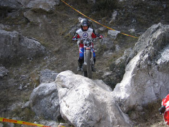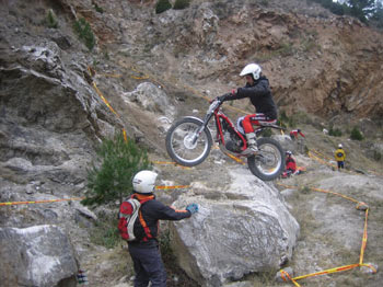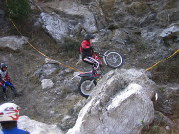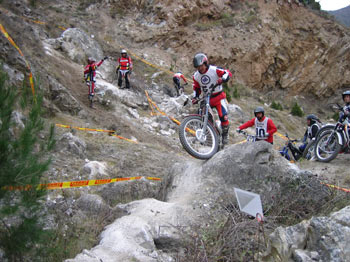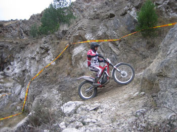 A las 10 de la mañana del sábado daba comienzo el Trial en el frontón de la localidad con 10 zonas a 3 vueltas en una mañana bastante fría y amenazando lluvia e incluso nieve, como a lo largo de la jornada pudimos comprobar. A pesar de la climatología, el Moto Club Calahorra marcaba un bonito y exigente Trial con zonas nuevas y una interzona bastante más larga que en ediciones anteriores.