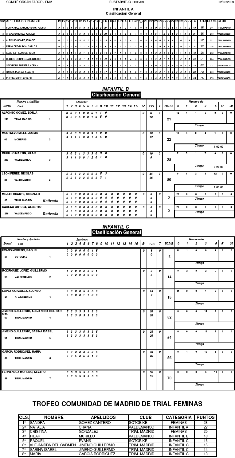 El trial de Bustarviejo daba comienzo a la temporada el pasado 1 de marzo, organizado por el Comité Organizador de la FMM. En esta ocasión estaban también convocadas todas las categorías infantiles y la de féminas, siendo para ellos su segunda prueba tras la celebrada el fin de semana anterior en Collado Mediano. Precisamente las categorías infantiles estrenaban un nuevo formato, destinado a aumentar la participación de los más pequeños, y que fue del agrado de todos pues además se está logrando el objetivo de aumentar la participación.