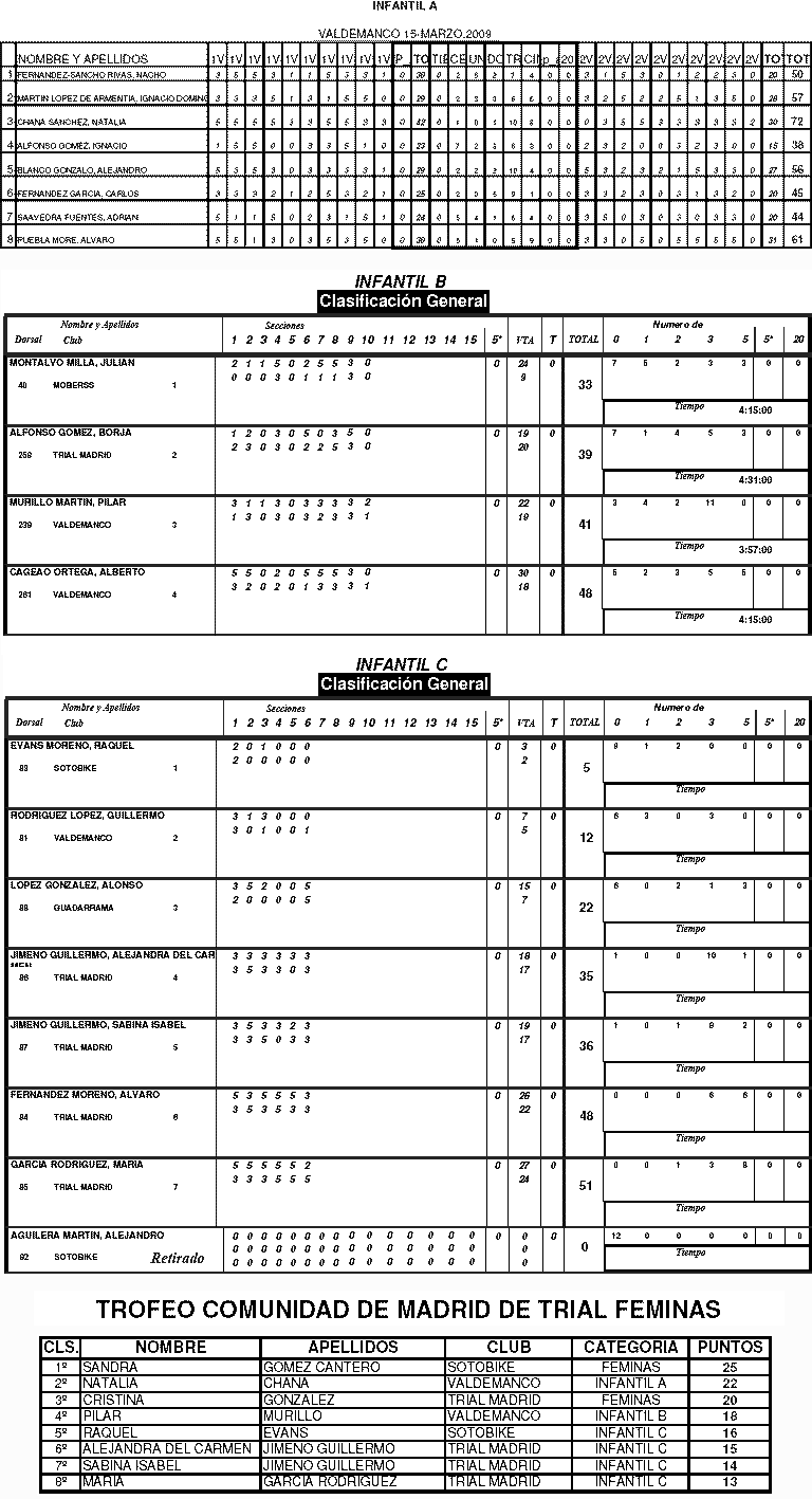 Al igual que el anterior de Valdemanco, este trial fue puntuable también para el Campeonato de Castilla La Mancha, por lo que acudieron muchos pilotos de las dos comunidades. Pero pasemos ya a dar un repaso a los resultados en las cuatro categorías participantes.