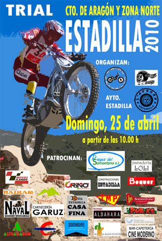 El domingo día 25 de abril tendrá lugar en Estadilla la séptima edición del trial villa de Estadilla, la prueba será la quinta del campeonato aragonés para la temporada 2010 y la segunda del open zona norte. Las verificaciones técnicas e inscripciones comenzaran a las 9:00 y la salida de pilotos a las 10:00.