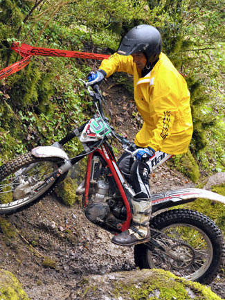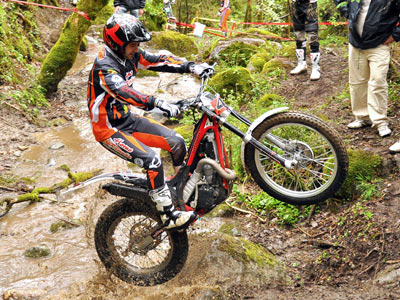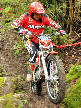 dureza del trial es patente en esta imagen de Jaime Mora, 1º en TR2