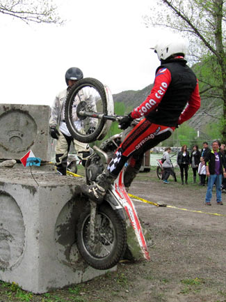 Lo innegable de este trial es que el entorno donde se desarrolla es de una belleza inigualable. Las 5 primeras secciones se marcaron en las inmediaciones de la carretera que une Villanova con Sos. La primera de ellas era relativamente fácil, pues una ladera de roca no parecía guardar demasiadas complicaciones, pero el agua matinal complicó y mucho su ejecución. La segunda se encontraba cerca e intercalaba la roca con la yerba típica de prados pirenáicos. Las tres últimas secciones naturales se encontraban en el cauce de un riachuelo. Enlazadas una tras otra, mostraron los pasos más técnicos y fueron las que realmente decidieron la clasificación final. La estampa de estas tres zonas era realmente perfecta, excepto por lo muchísimo que patinaban.