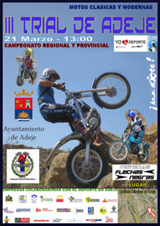 Organizado por el M.C. Flechas Negras y con lugar de celebración en el término Municipal de Adeje, en el sur de Tenerife. El III Trial de la Villa de Adeje, contará con seis zonas a tres vueltas.