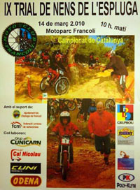 Desde el pasado fin de semana ya tenéis publicado en la Zona 8 de Todotrial Actual y en la Zona 6 de Todotrial Clásico, los calendarios del Campeonato de Catalunya Open 2010, Copa Catalana per a nens 2010 y Copa Catalana de Trial de Clásicas 2010.