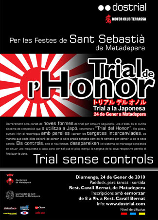 Esto es lo que se hará en el próximo trial de Matadepera fiestas de Sant Sebastiá, organizado por Dostrial y el Motor Club Terrassa, que tendrá lugar el domingo 24 de enero de 2010.