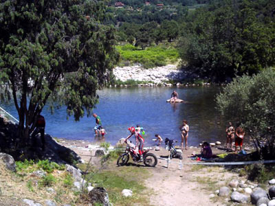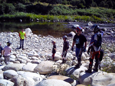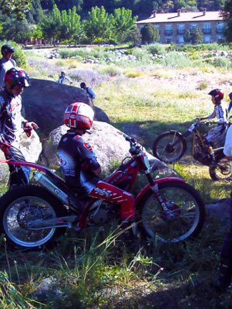 Los miembros de Motoclub Almanzor, organizadores del trial, nos tenían preparadas 6 zonas variadas, la mayoría de ellas al margen del río, la 1 y la 5 eran complicadas sucesiones de piedras muy redondeadas que hacían muy difícil su terminación en menos de 3 puntos, los que lo consiguieron fueron a la postre los que marcaron las diferencias en la competición.