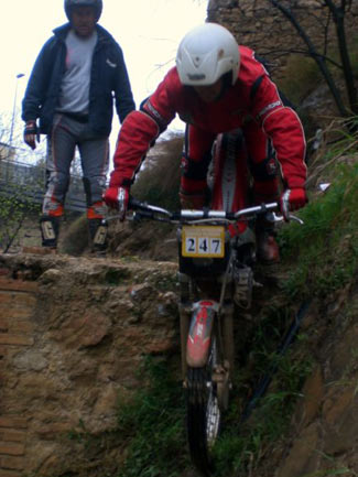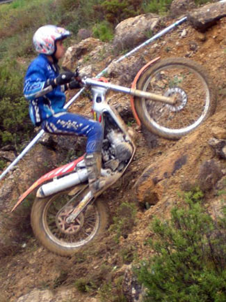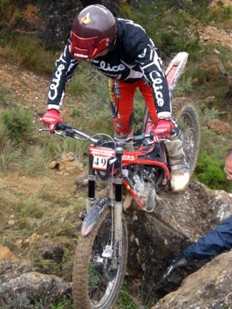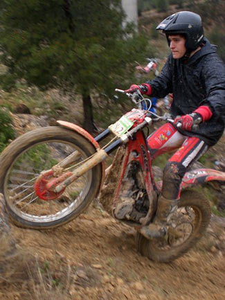 Manu Reyes con su Sherco 125cc lograba el mejor score del primer giro, empatado a puntos con Pablo Tena, que este año abandona Senior C y se pasa a las flechas rojas.