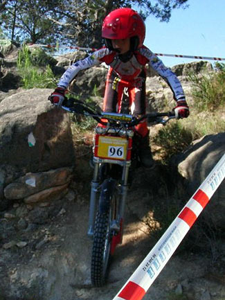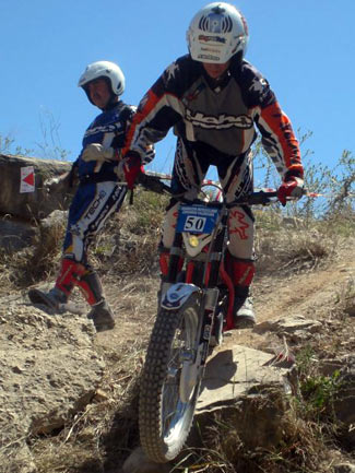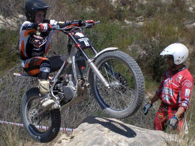 El duelo entre Andrea Mira y José Fletes fue en esta ocasión para Andrea y su Sherco. El joven Fletes con su pequeña 80cc se defendía muy bien en las reviradas zonas de La Vila.