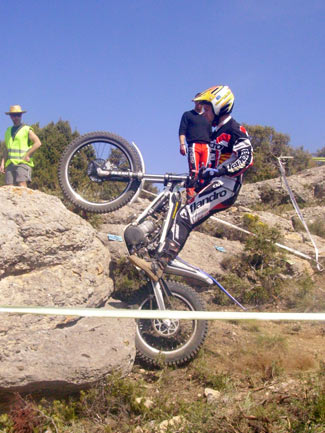 El actual campeón de Aragón, Jordi Sanjuan se mostraba seguro en las zonas y sin grandes contratiempos, firmaba cero tras cero en las primeras pasadas. Copiando los mismos resultados el de Beceite, David Millán, superaba sin esfuerzos las zonas. El piloto del M.C. Benasque, Hector Gairín, se quedaba algo descolgado por fallos tontos que pesarían demasiado de cara al final de la carrera. Dejaba pies sueltos por falta de concentración, penalizaciones en forma de “unos” que lo distanciaban de la pareja de cabeza.