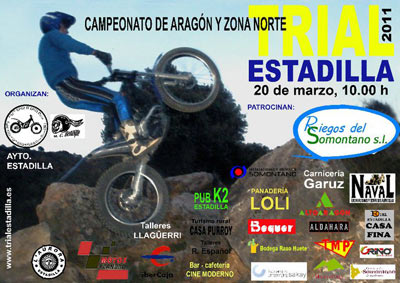 El domingo día 20 de marzo tendrá lugar en Estadilla (Huesca) la octava edición del Trial Villa de Estadilla, la prueba será la tercera del campeonato aragonés para la temporada 2011 y la que de comienzo al Open Zona Norte.