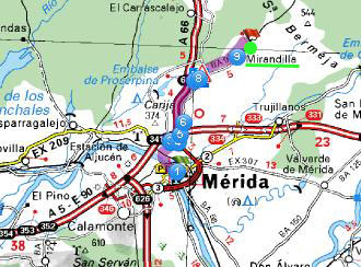 Para llegar hay que tomar en la autopista A5, la salida 341 dirección Mérida Norte, después en la A66 tomar la salida 613 dirección Embalse Proserpina.